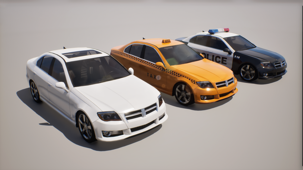 Vehicle Body 5 pcs 4K Texture (Sedan 1, Taxi 1, Police Car 3)